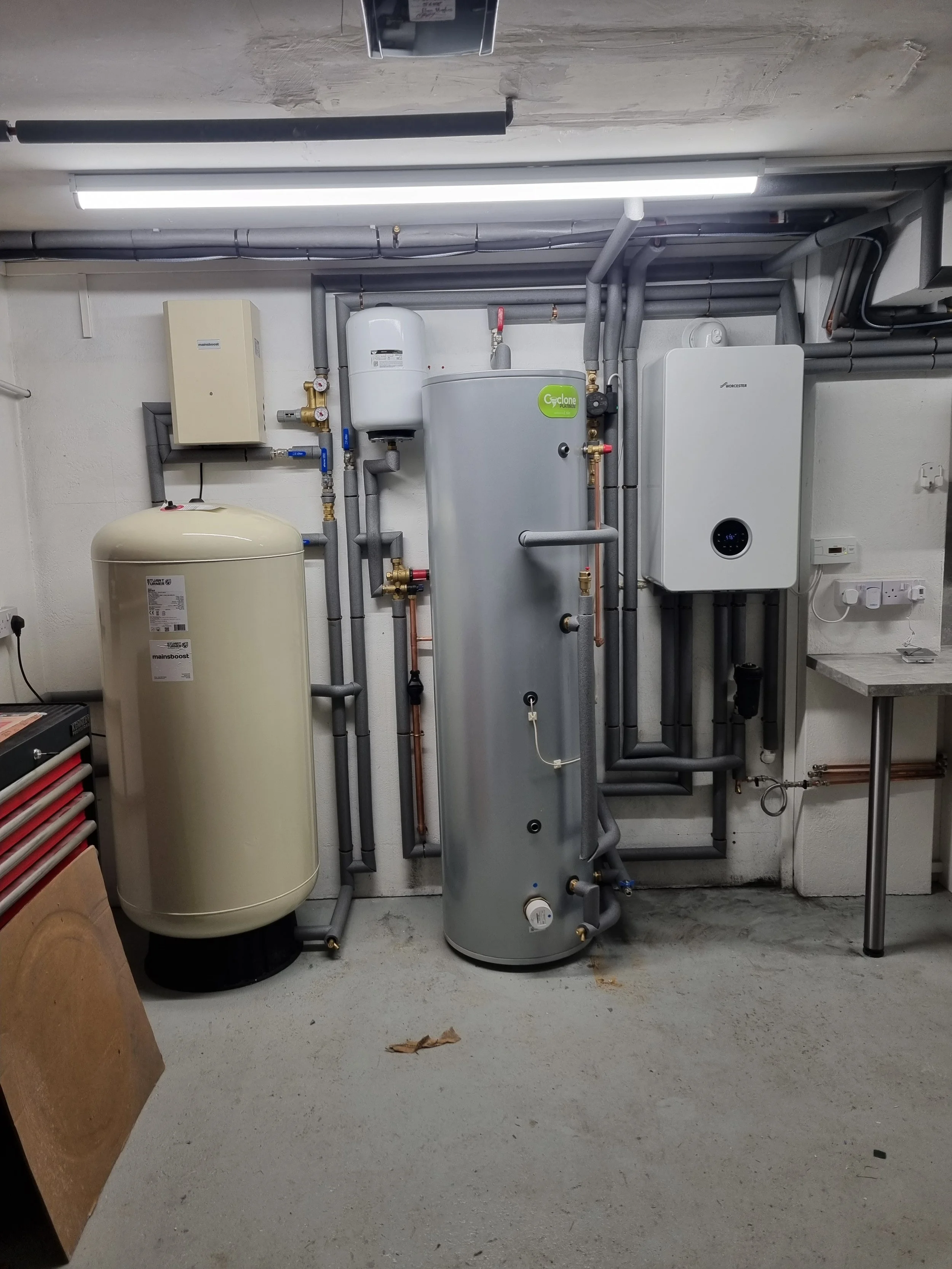 Hot water systems: cylinder installation and maintenance, immersion heaters, unvented cylinders and heat pump integration.